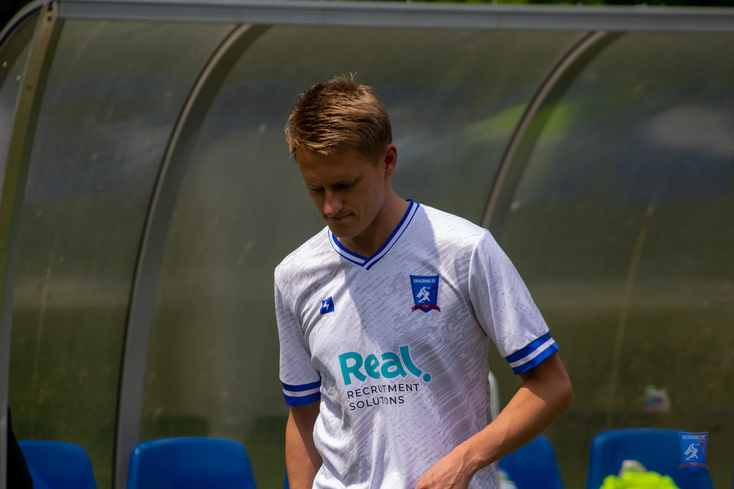Sassini found himself involved again five minutes later. Chandran got ahead of an opponent to win the ball midway through the Prądniczanka half. He found Lemmen in the centre of the park, who in turn picked out Samyonov on the right flank. The Dragoons winger crossed into the box to find Sassini, who whacked a volley over the bar.