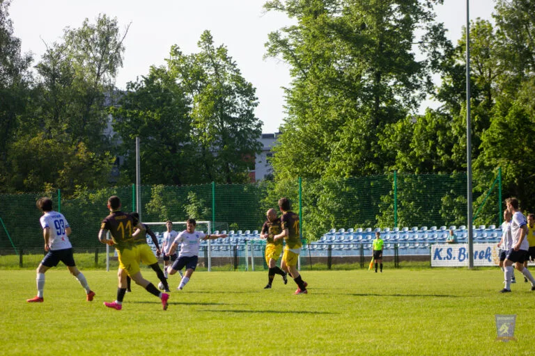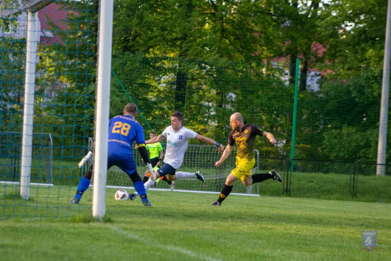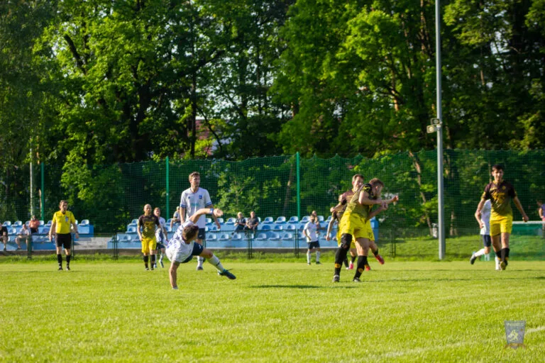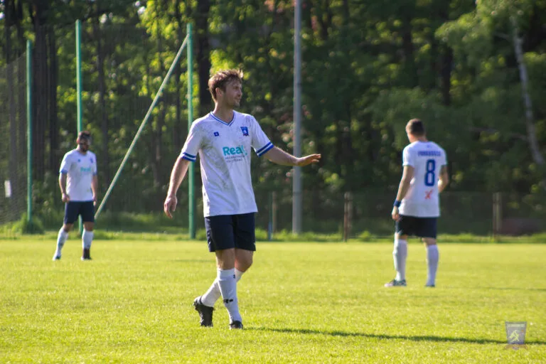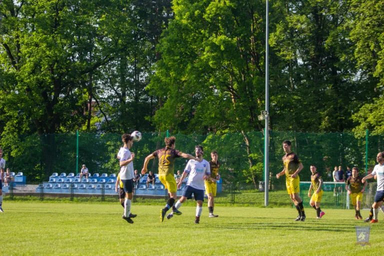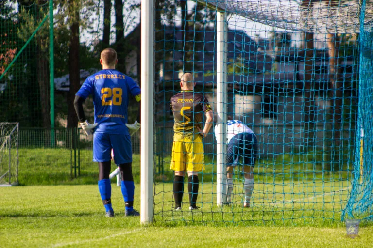 Two minutes later, Strzelcy registered their first attempt of note. A corner kick went across the box and a firm header went wide of Marcin Obyrtacz’s goal.
