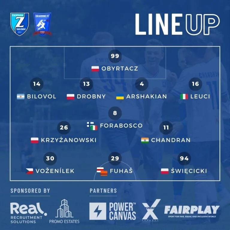 In all truth, the Dragoons struggled to get to grips with the wind and high press in the second half. The Expats struggled to get out of their own half and needed to adapt their game better. Zawisza deserved the points on the balance of play, but the Dragoons will be disappointed with their second half performance.